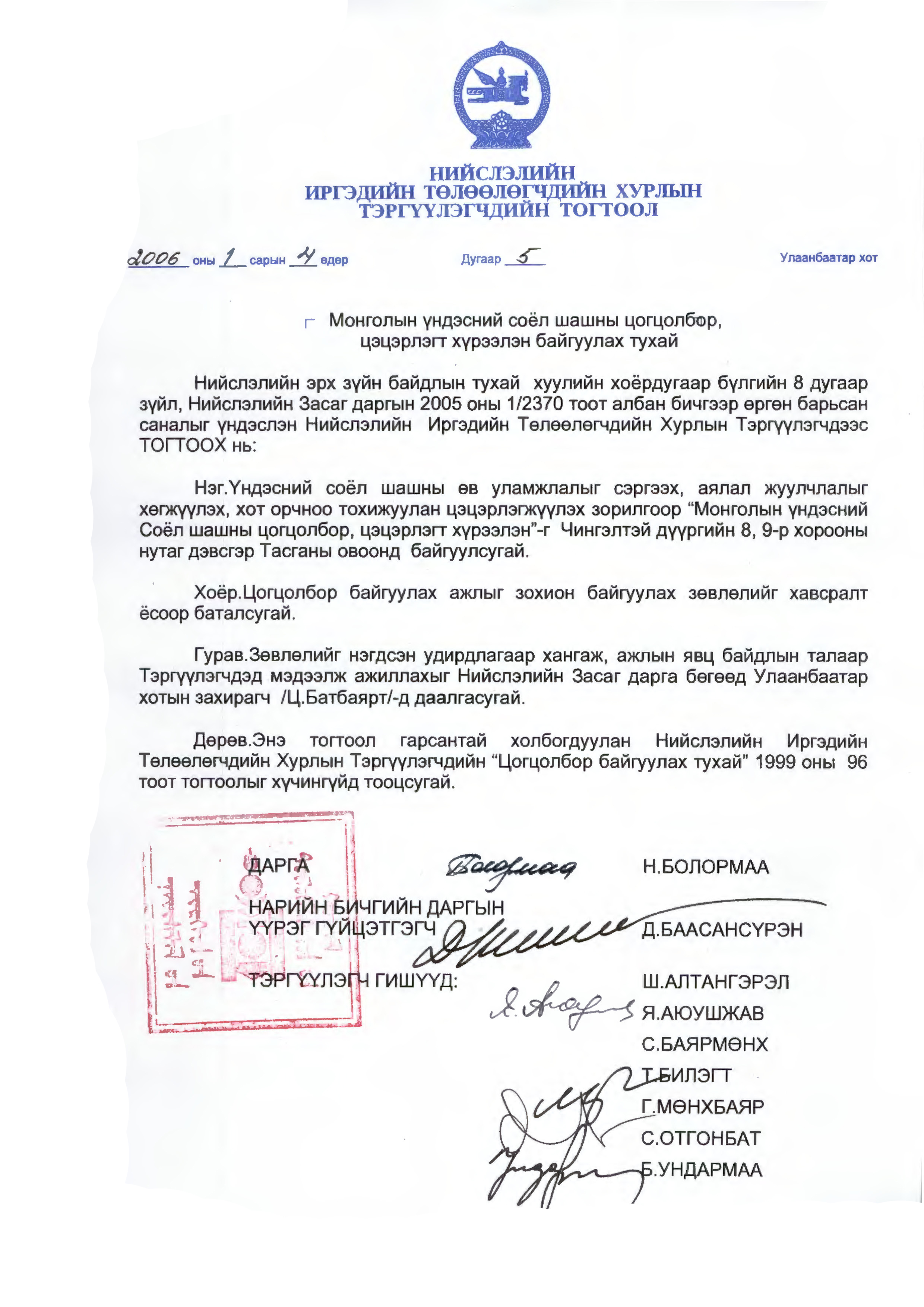 | НИХ-ын тогтоол | 2006-01-04 | 5 |
