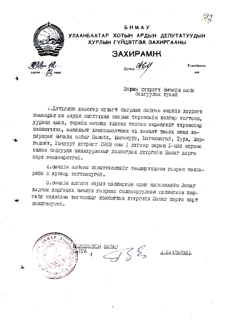 | АДХГЗ-ны захирамж | 1992-12-03 | А/64 | |