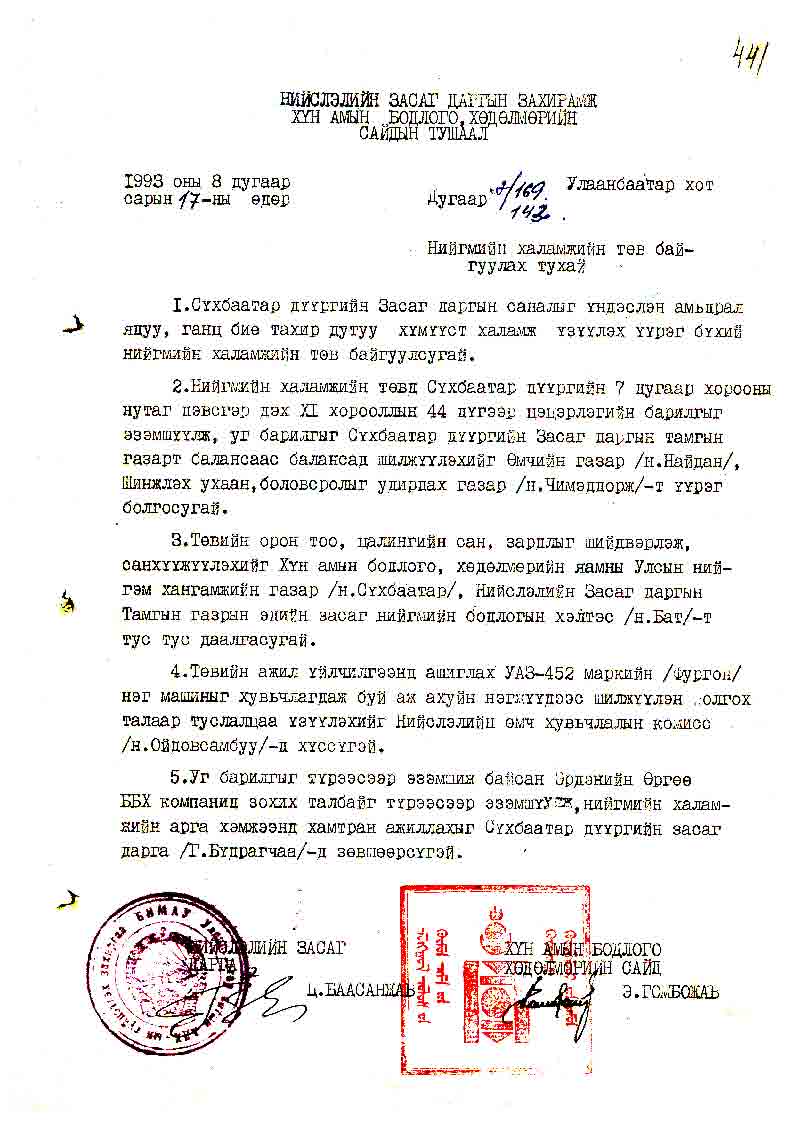| Шийдвэр | Огноо | Дугаар | Нэр |