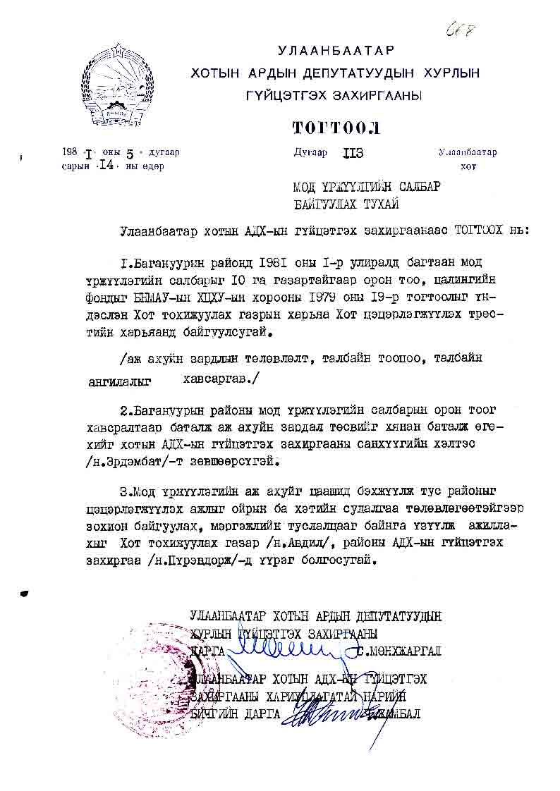 | АДХГЗ-ы тогтоол | 1981-05-14 | 113 | Мод үржүүлгийн салбар |