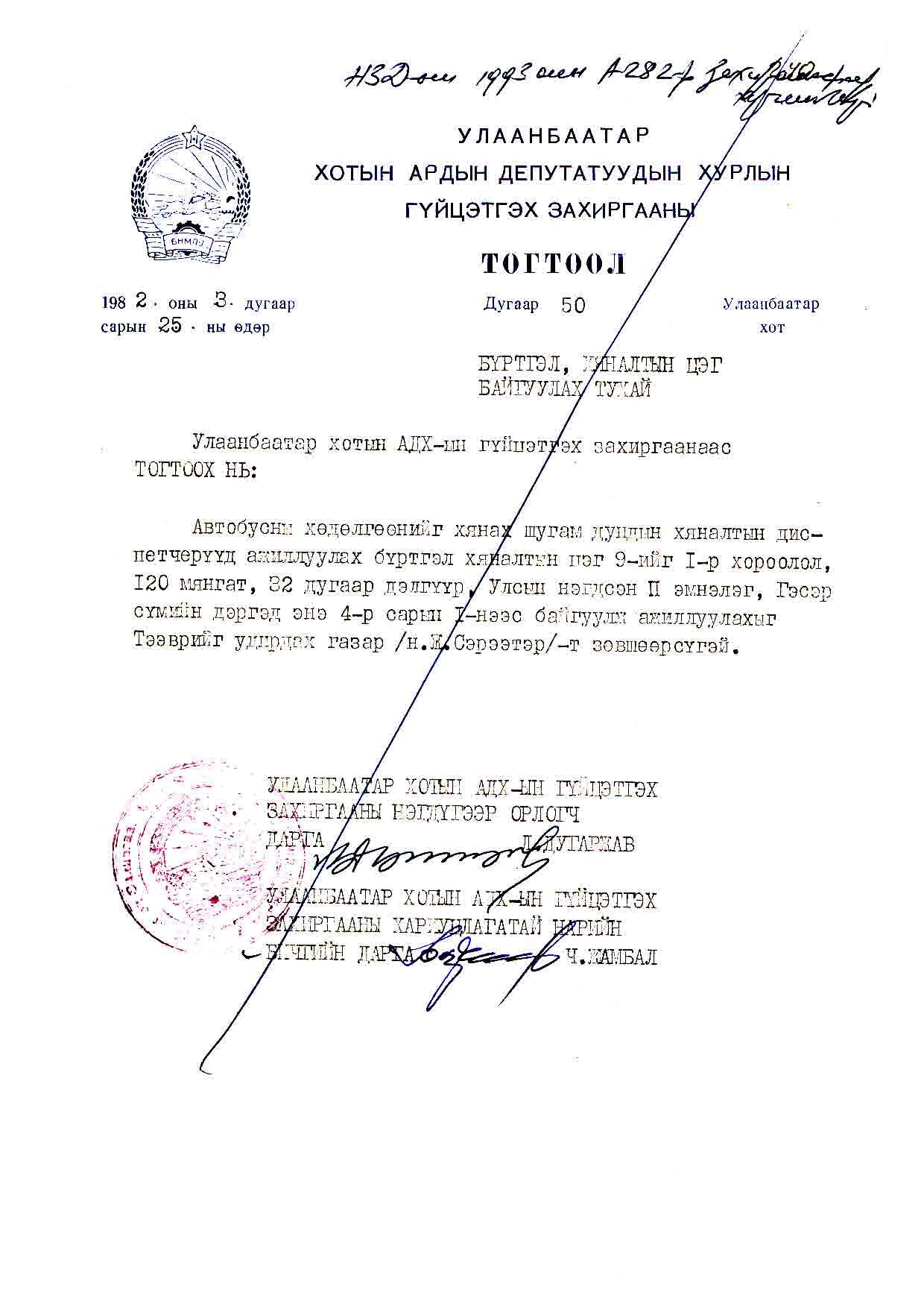 | УБ хотын АДХГЗ-ы тогтоол | 1982-03-25 | 50 | Бүртгэл хяналтын цэг |