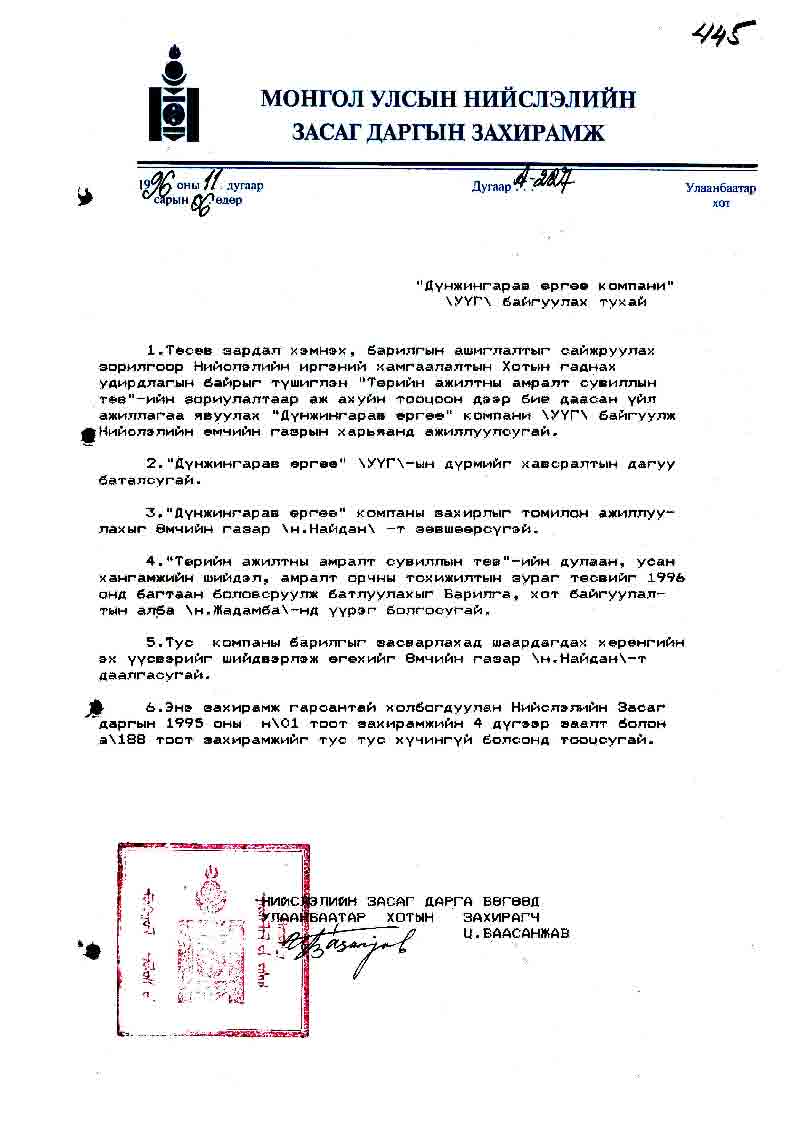 | Шийдвэр | Огноо | Дугаар | Нэр |