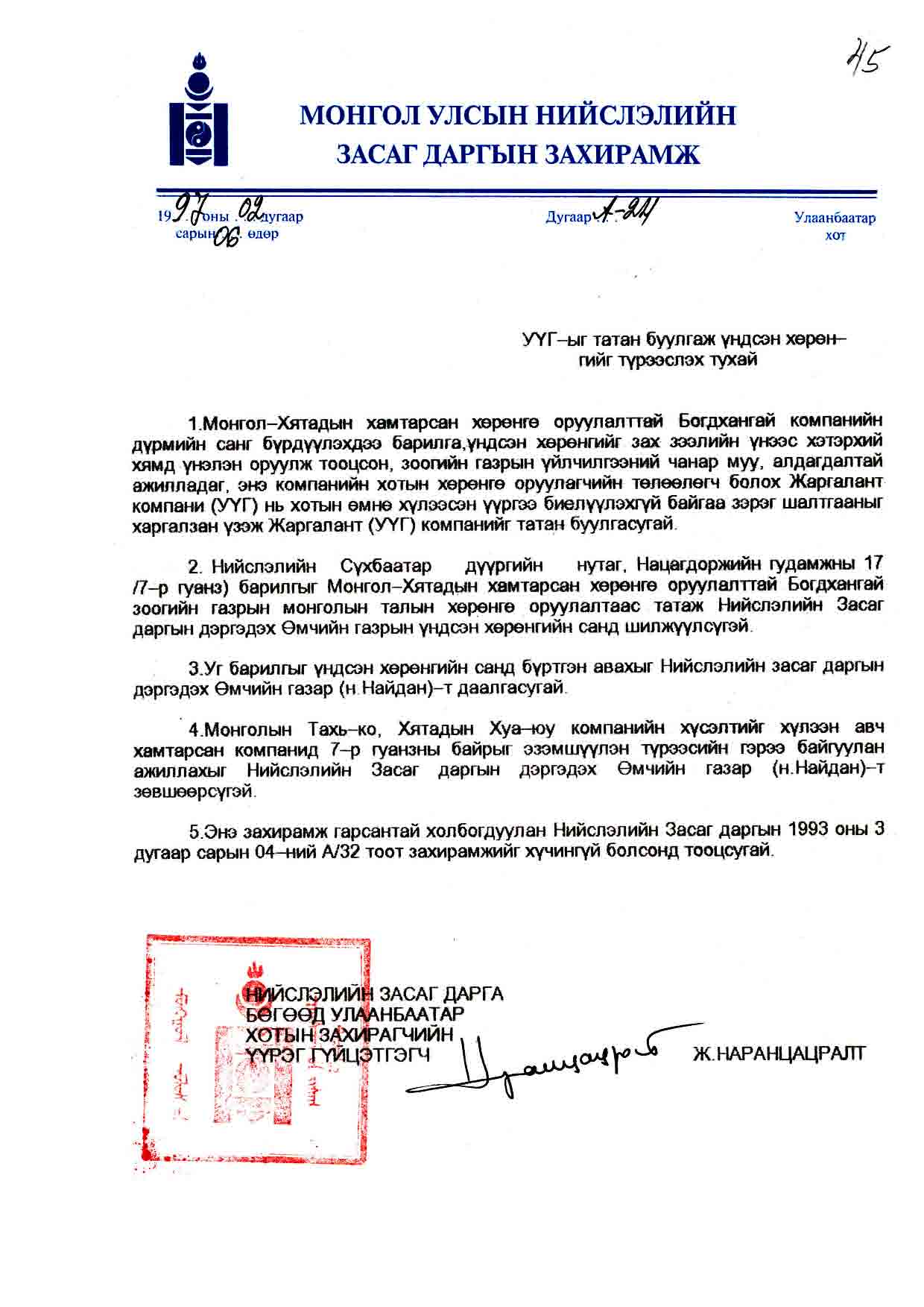 | Шийдвэр | Огноо | Дугаар |