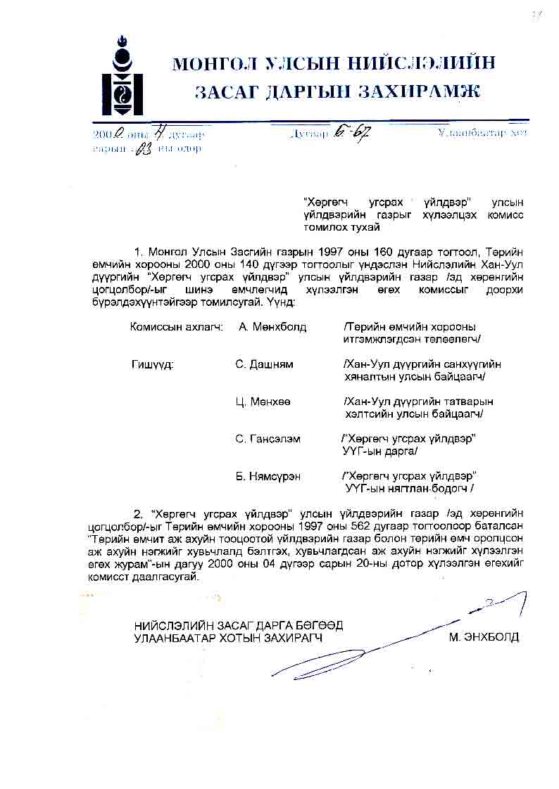 | Шийдвэр | Огноо | Дугаар |