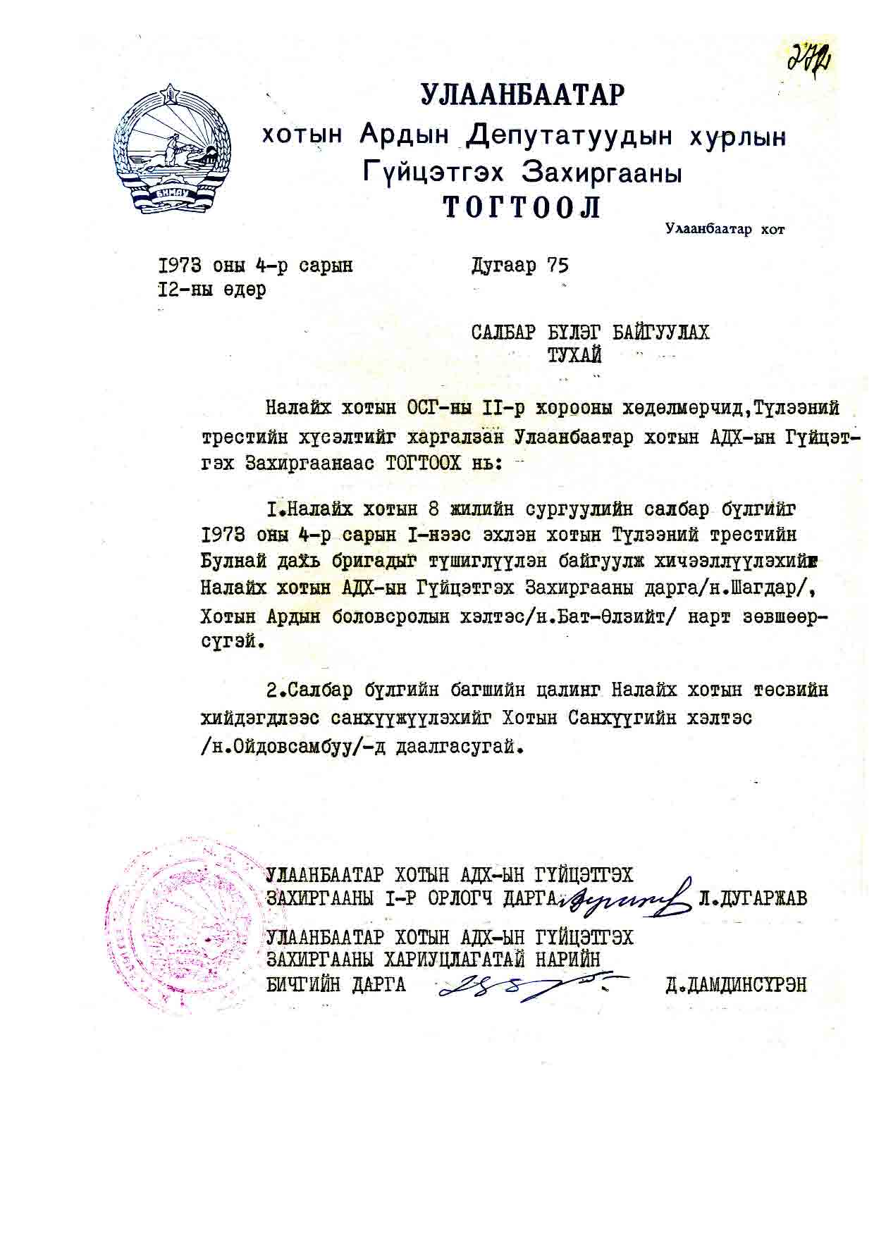| АДХГЗ-ы тогтоол | 1973-04-12 | 75 | |