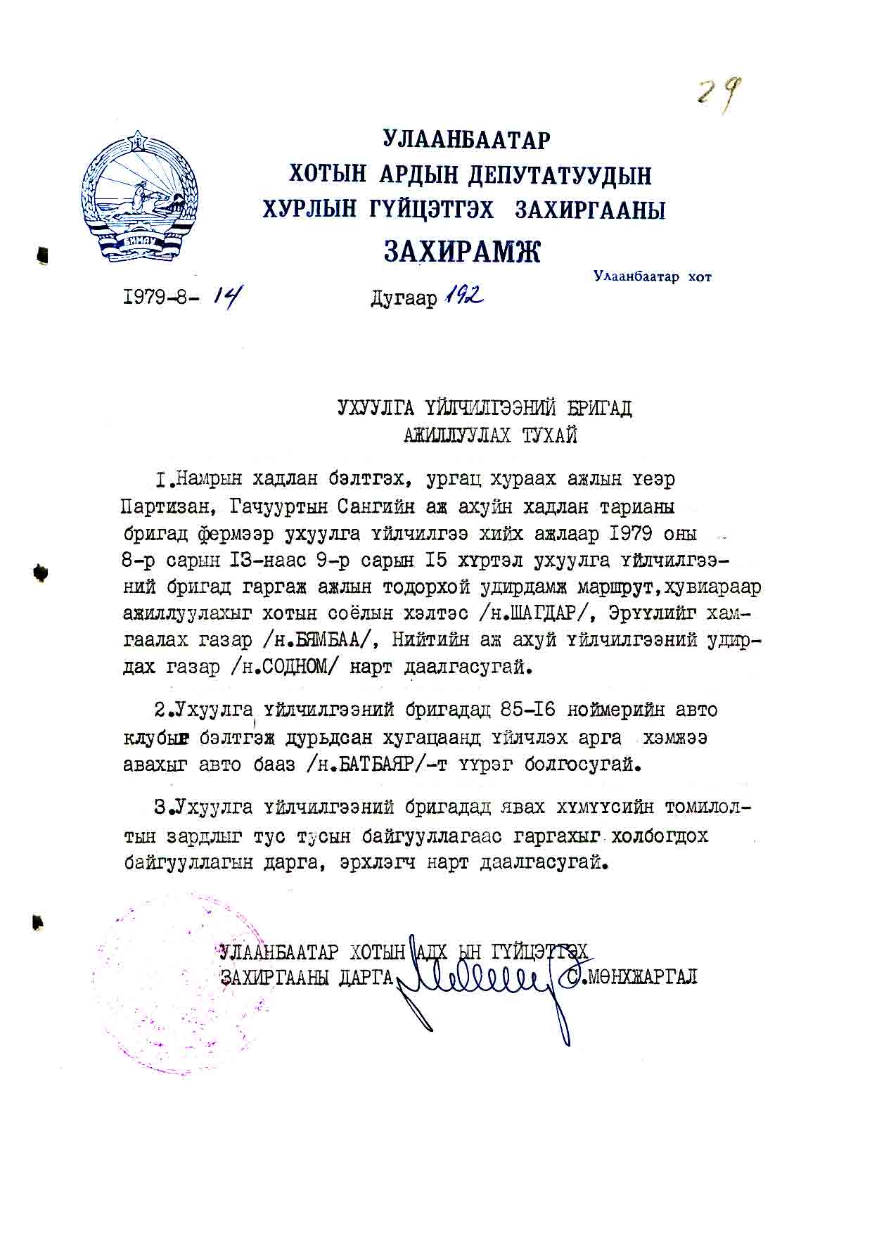 | АДХГЗ-ны захирамж | 1979-08-14 | 192 | |