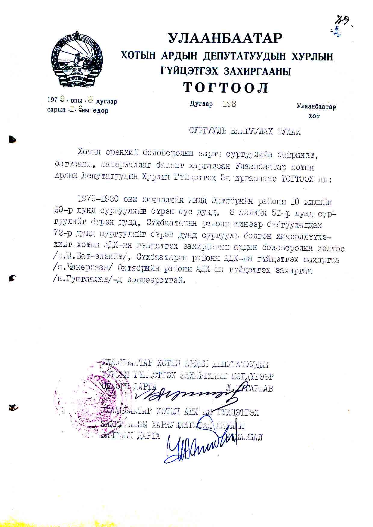 | АДХГЗ-ны тогтоол | 1979-08-16 | 198 | |