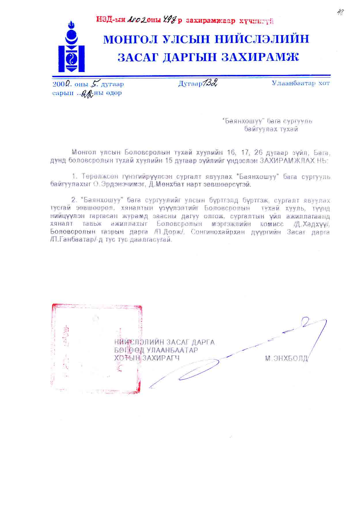 | НЗДЗахирамж | 2000-05-22 | 132 | Баянхошуу |
