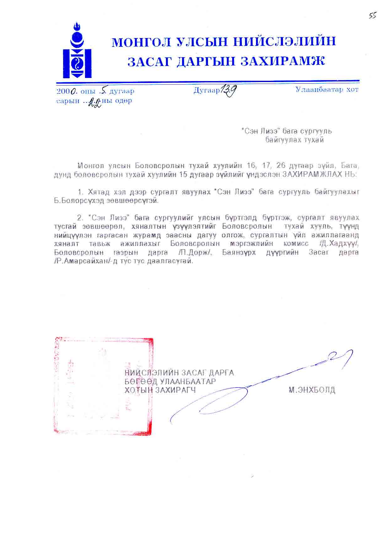 | Шийдвэр | Огноо | Дугаар | Нэр |