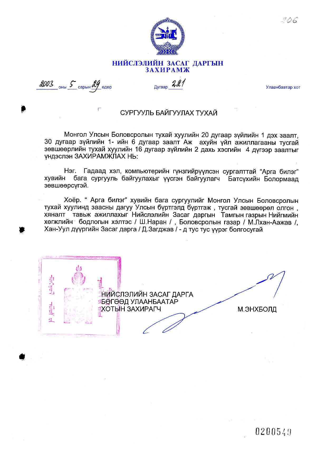 | НЗД-ын захирамж | 2003-05-29 | 221 | |