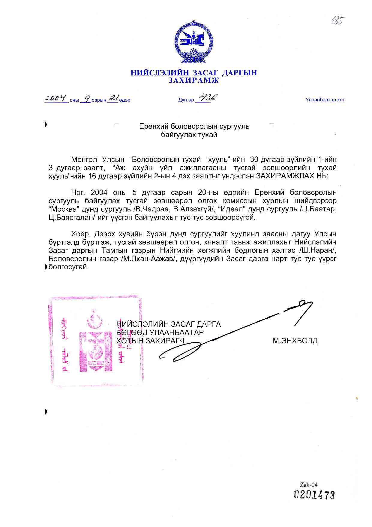 | НЗД-ын захирамж | 2004-09-21 | 436 | |