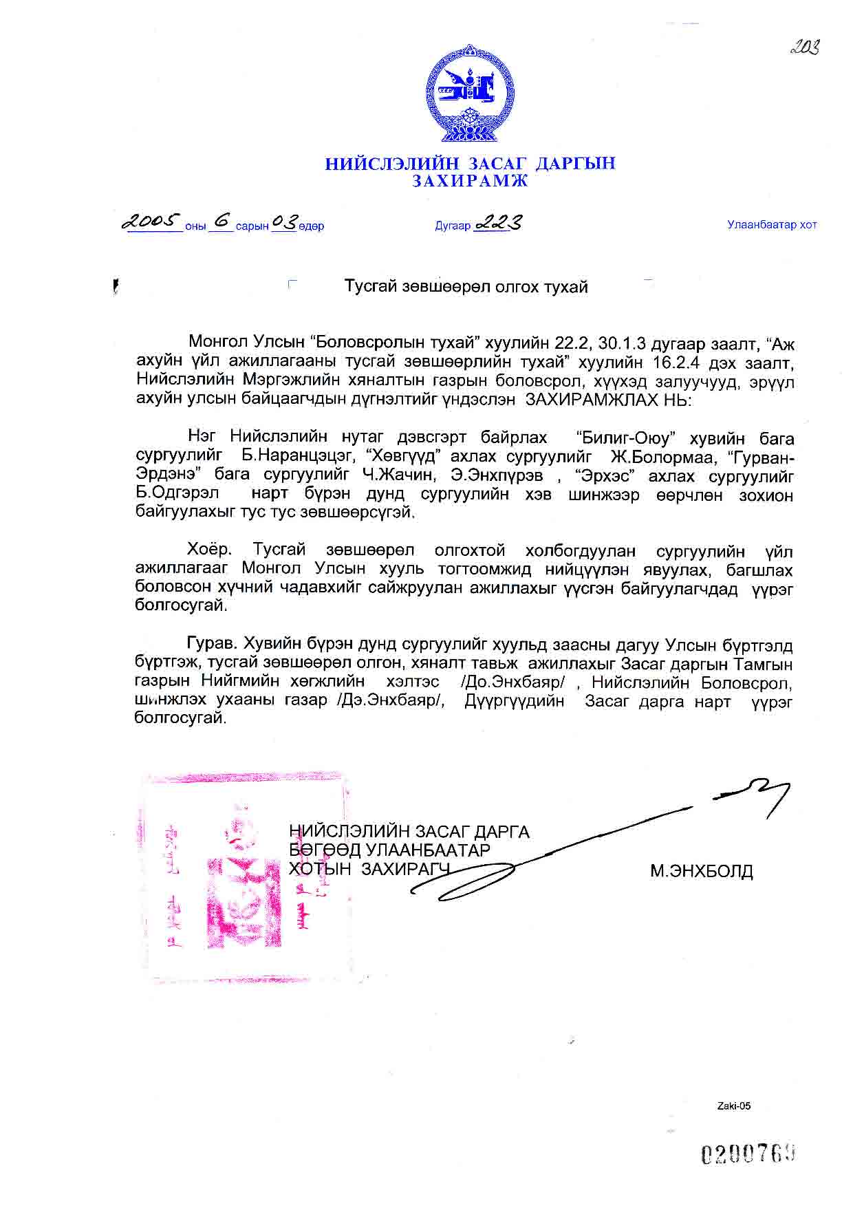 | НЗД-ын захирамж | 2005-06-03 | 223 | |