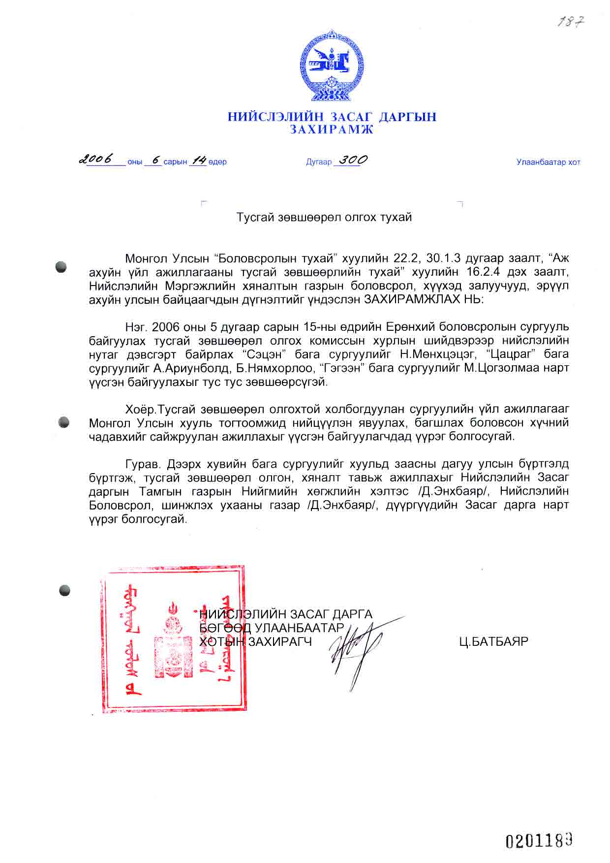 | Шийдвэр | Огноо | Дугаар | Нэр |