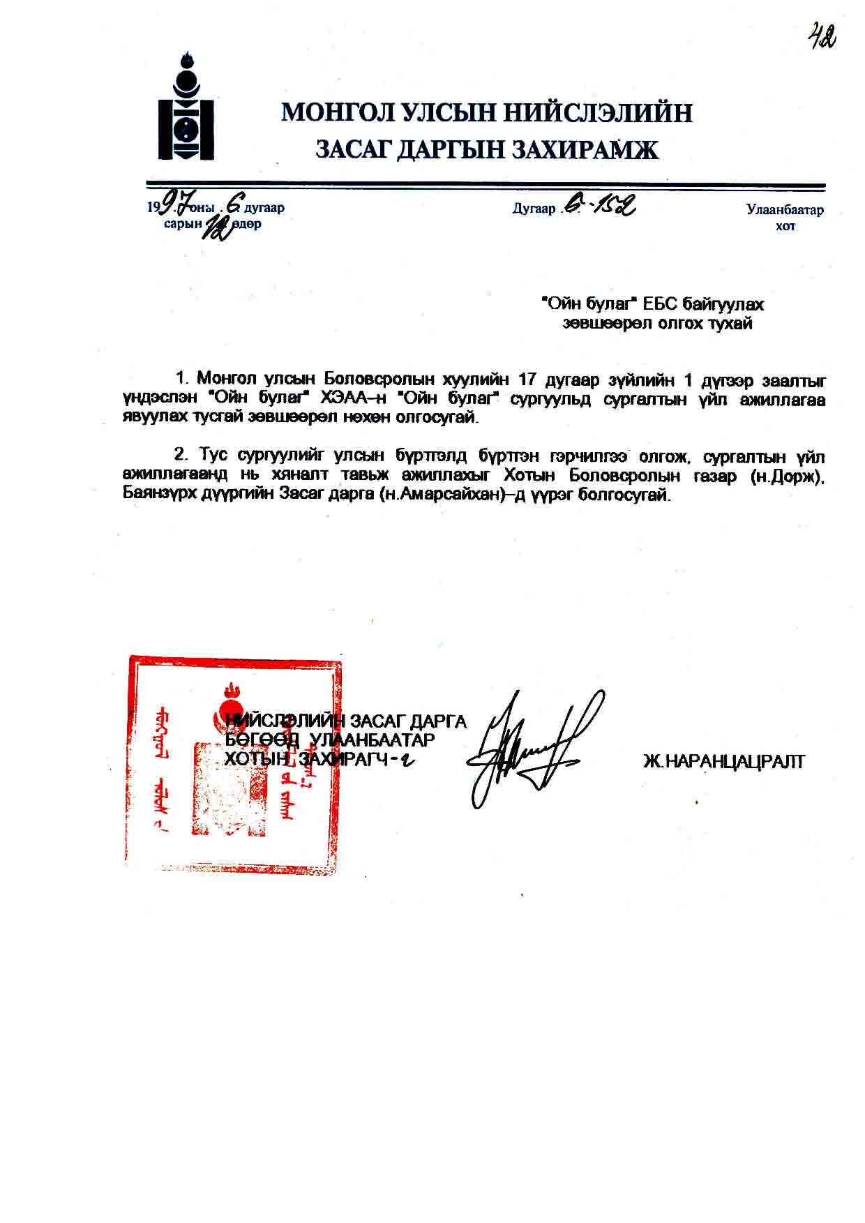 | Шийдвэр | Огноо | Дугаар | Нэр |