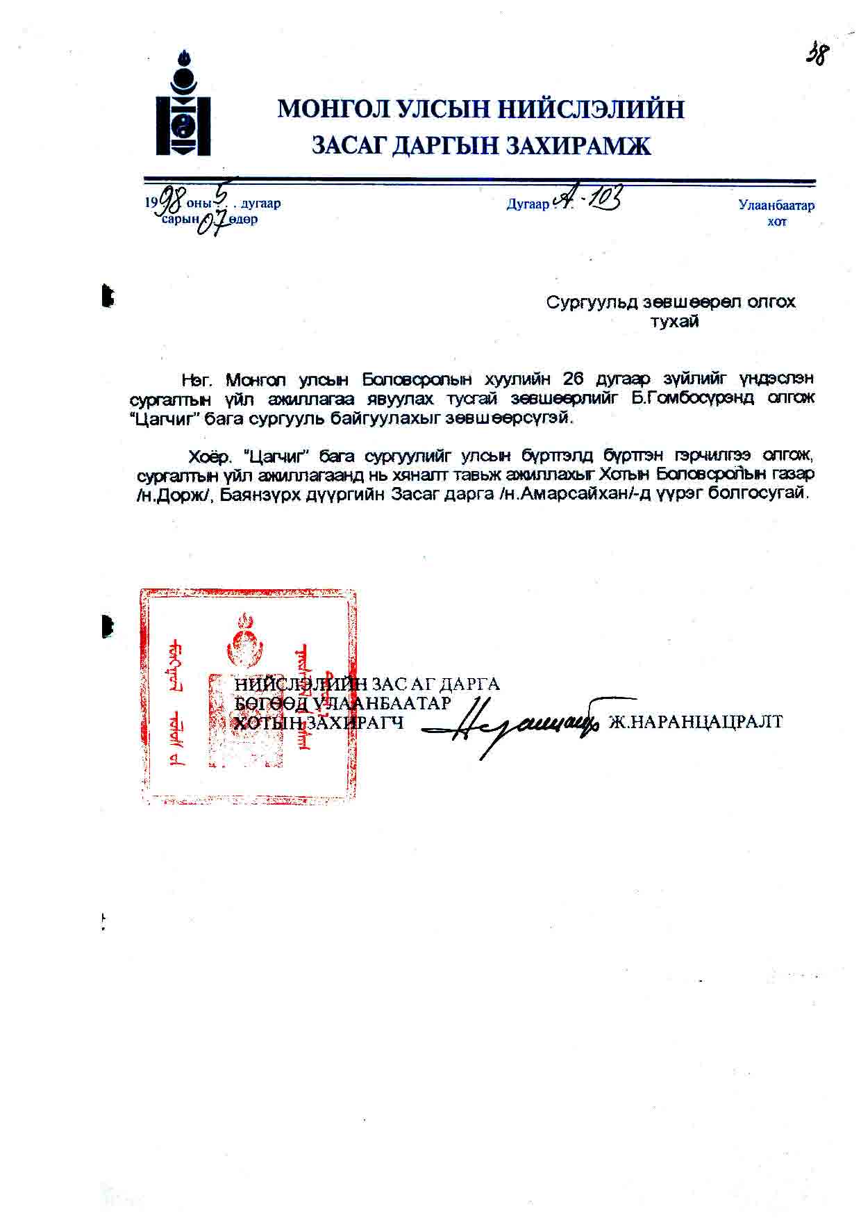 | НЗД-ын захирамж | 1998-05-07 | А/103 | |