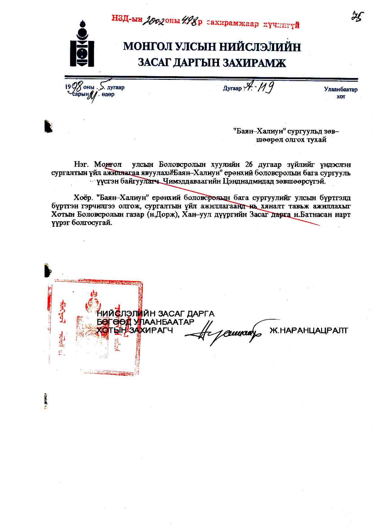 | Шийдвэр | Огноо | Дугаар | Нэр |