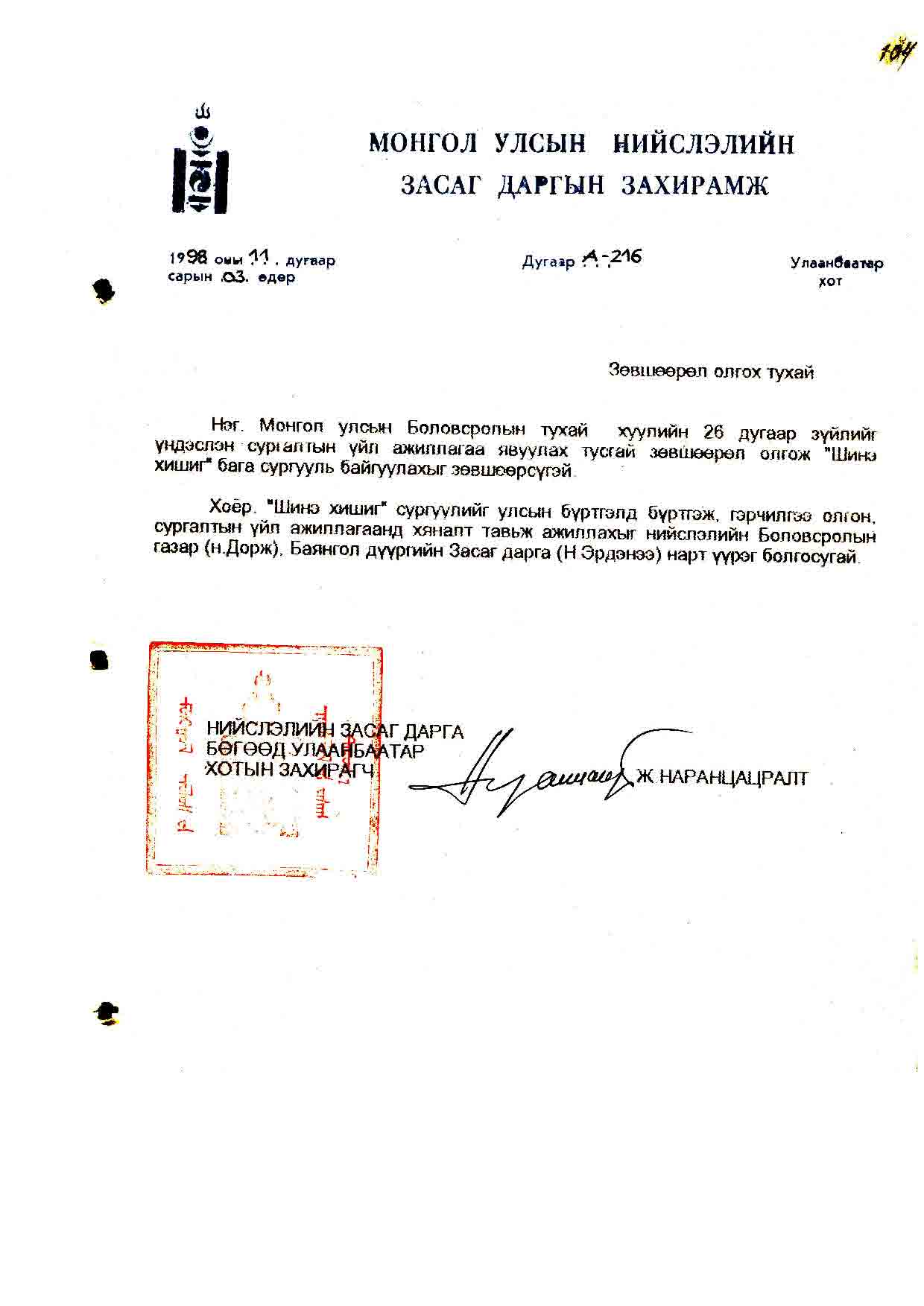 | Шийдвэр | Огноо | Дугаар | Нэр |