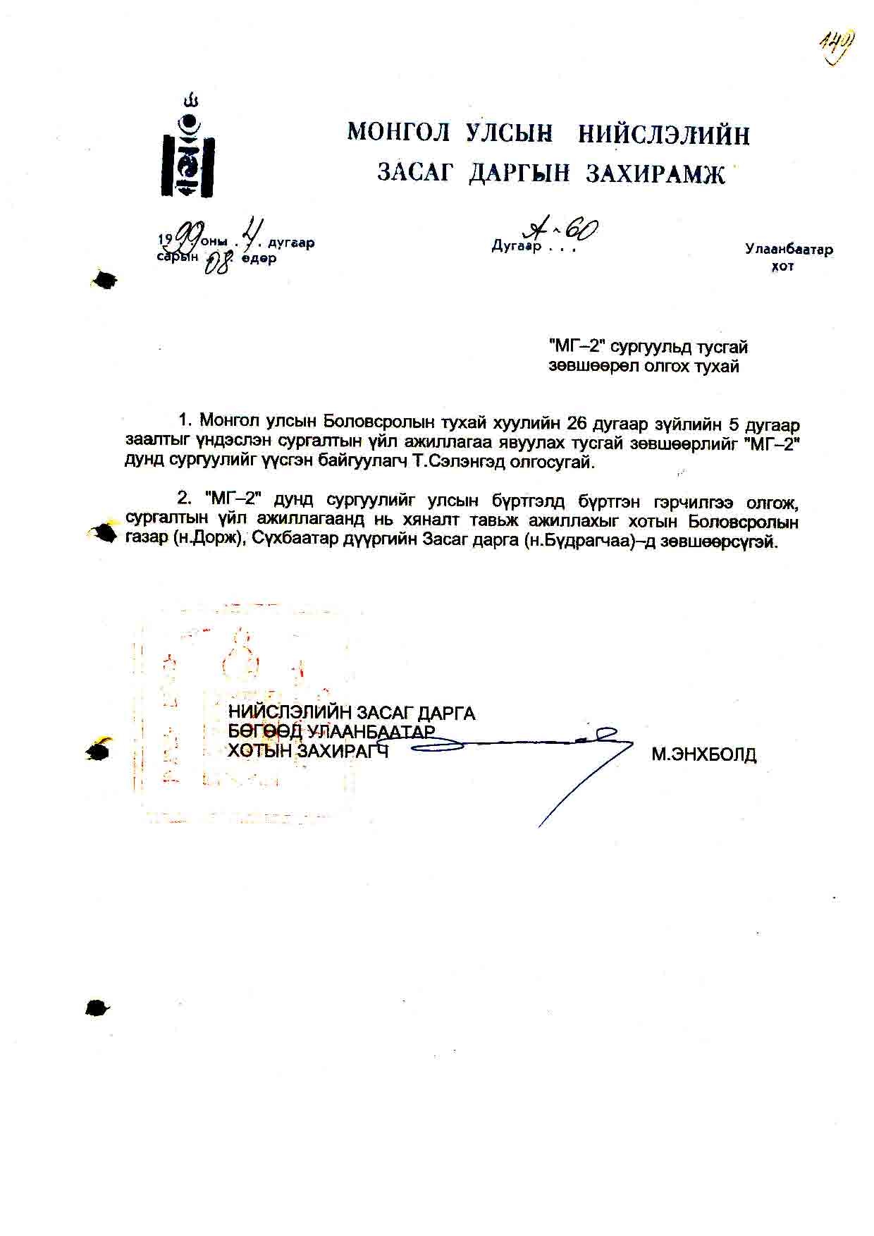 | Шийдвэр | Огноо | Дугаар | Нэр |