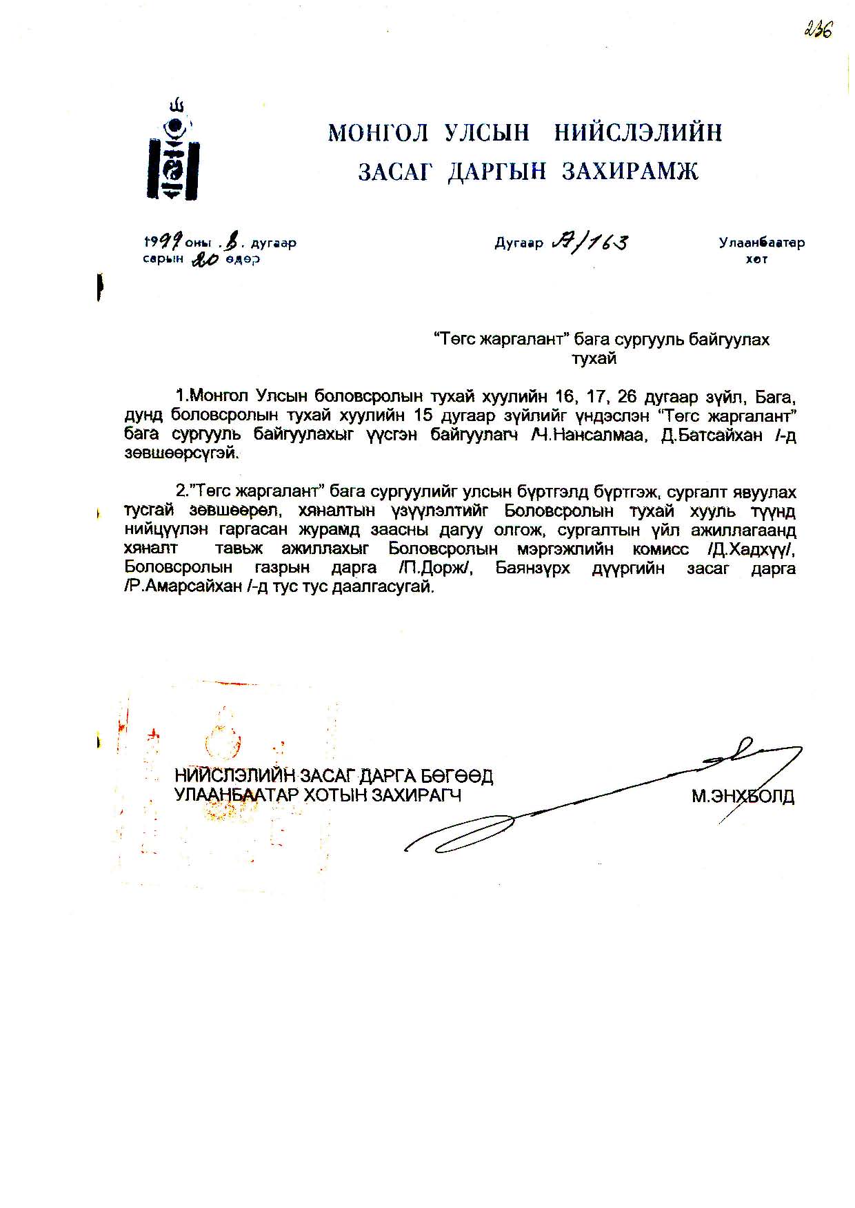 | НЗД-ын захирамж | 1999-08-20 | А/163 | |