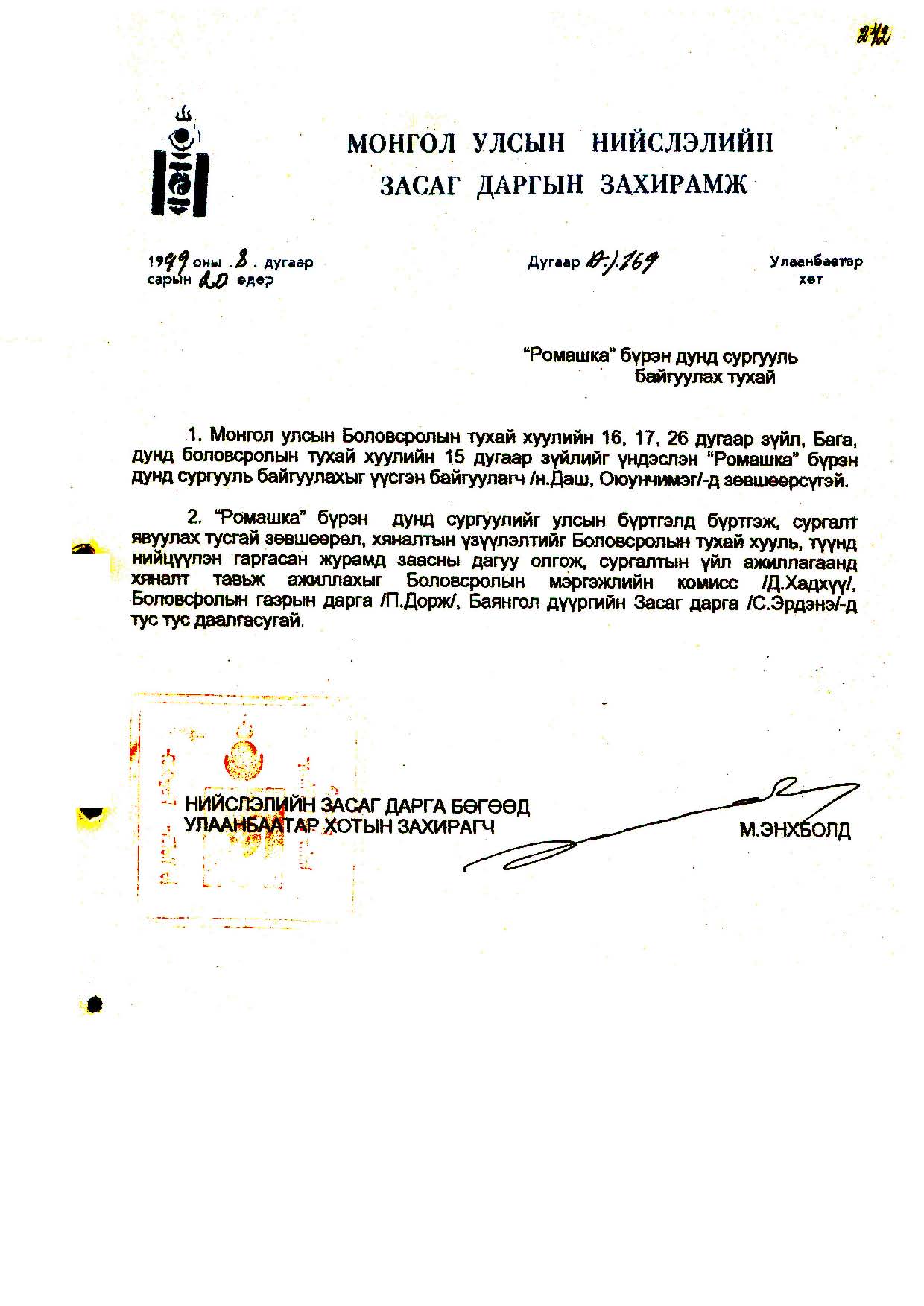 | Шийдвэр | Огноо | Дугаар | Нэр |