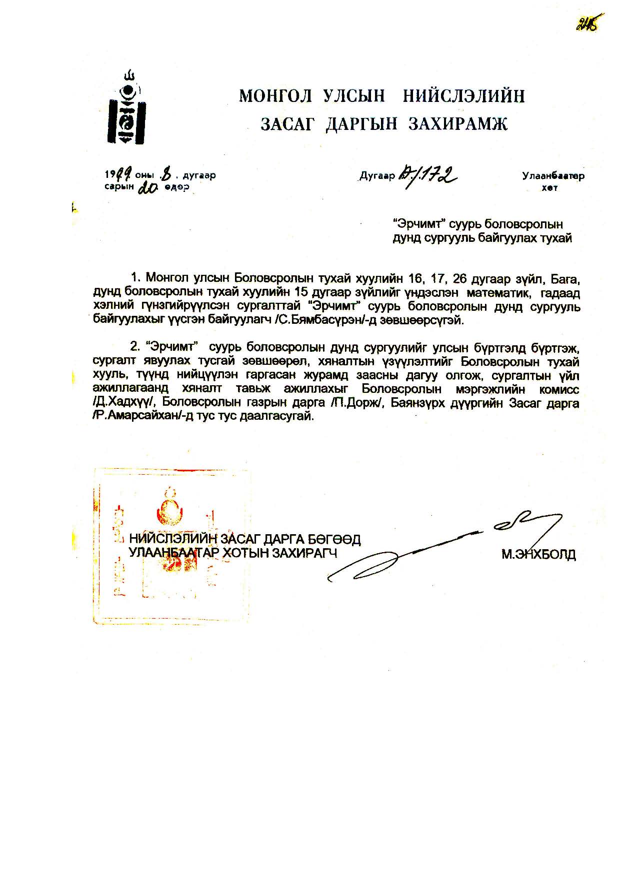 | Шийдвэр | Огноо | Дугаар | Нэр |